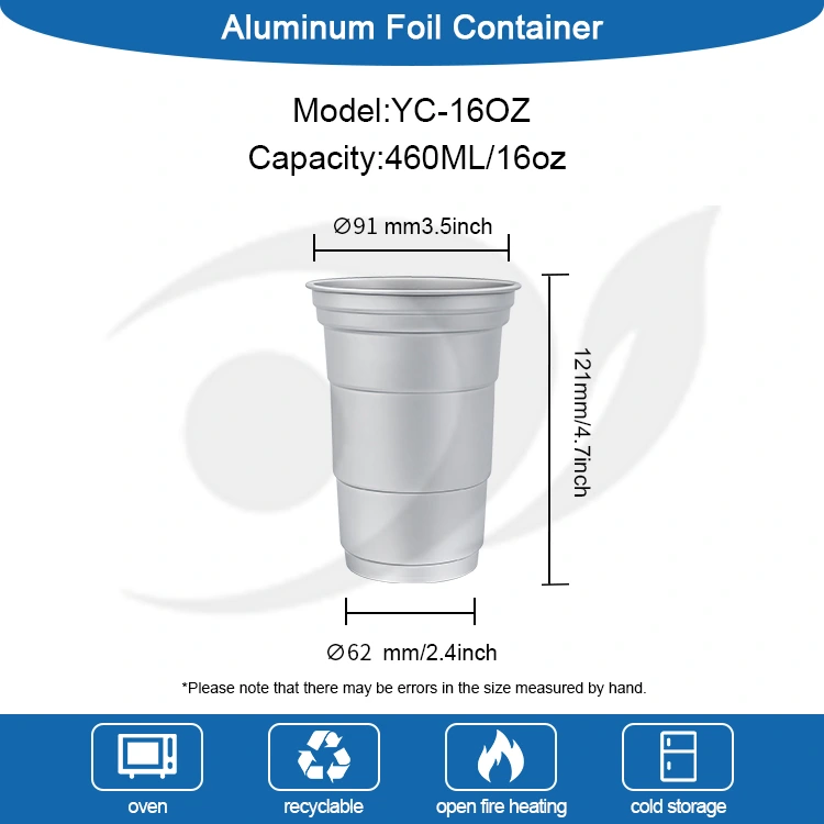 Yunchu este un producător de frunte din China de 16 oz, de unică folosință, din folie de aluminiu personalizată. Această ceașcă de băut din folie de aluminiu personalizată de unică folosință de 16 oz este o ceașcă din folie de aluminiu de 460 de mililitri, potrivită pentru băuturi standard, cum ar fi cafeaua și berea. Are un design standardizat și se adresează în principal utilizatorilor comerciali, cum ar fi cafenele și baruri artizanale cu nevoi frecvente de personalizare. În timp ce oferă o conducere eficientă a căldurii și o performanță de bază de etanșare, această ceașcă de 16 oz, de unică folosință, din folie de aluminiu, reciclabilă, pune, de asemenea, un accent mai mare pe serviciile rapide și flexibile de personalizare vizuală a mărcii.