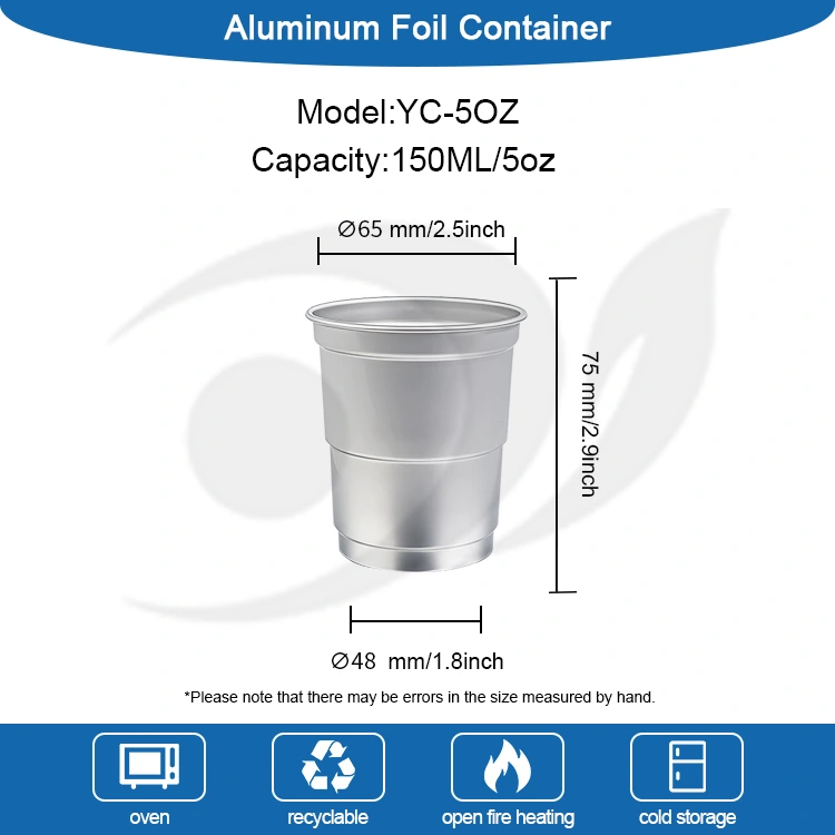 De la operațiuni comerciale la petrecerea timpului liber, de la evenimente la scară largă la scene de familie, Yunchu folie de aluminiu 5 oz băuturi reci reciclabile de unică folosință Paharul de băuturi din aluminiu satisface nevoile de bază ale diferitelor scene cu atribute de siguranță, calitate, protecție a mediului și adaptabilitate diversă. Foshan Yunchu Aluminium Foil Technology Co., Ltd. a aderat întotdeauna la conceptul de „respect, unitate și progres” și a folosit produse de ambalare din folie de aluminiu de înaltă calitate ca purtător pentru a transmite conceptul de viață durabilă. Produsele sale sunt exportate în Europa, Statele Unite, Asia de Sud-Est și alte regiuni și au câștigat încrederea clienților din întreaga lume. Alegerea paharelor frigorifice din folie de aluminiu Yunchu de 5 oz înseamnă a alege calitatea, protecția mediului și profesionalismul, făcând din fiecare băutură o practică a vieții verzi.