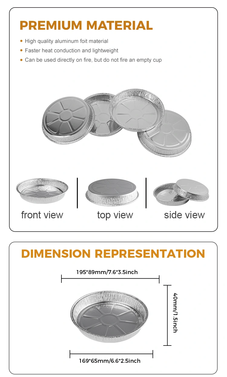 Foilul din aluminiu Yunchu oferă recipiente de folie de aluminiu din aluminiu din aluminiu de pizza de 7 inci cu numărul de model 5067. Produsul are un diametru superior de 168 mm (aproximativ 6,6 inci), un diametru mai mic de 145 mm (aproximativ 5,7 inci) și o înălțime de 25 mm (aproximativ 0,9 inci). Cu o capacitate de aproximativ 400 ml (aproximativ 14,1 oz), este ideal pentru coacerea pizza fără a se lipi în timpul coacerii, a mucegaiului ușor de eliberat și fără miros. În plus, designul său complet sertizat împiedică alimentele să se vărsă, crescând practic. De asemenea, putem oferi servicii de personalizare a logo -ului pentru a vă ajuta să aprofundați impresia clienților dvs. și să îmbunătățiți vizibilitatea mărcii dvs.