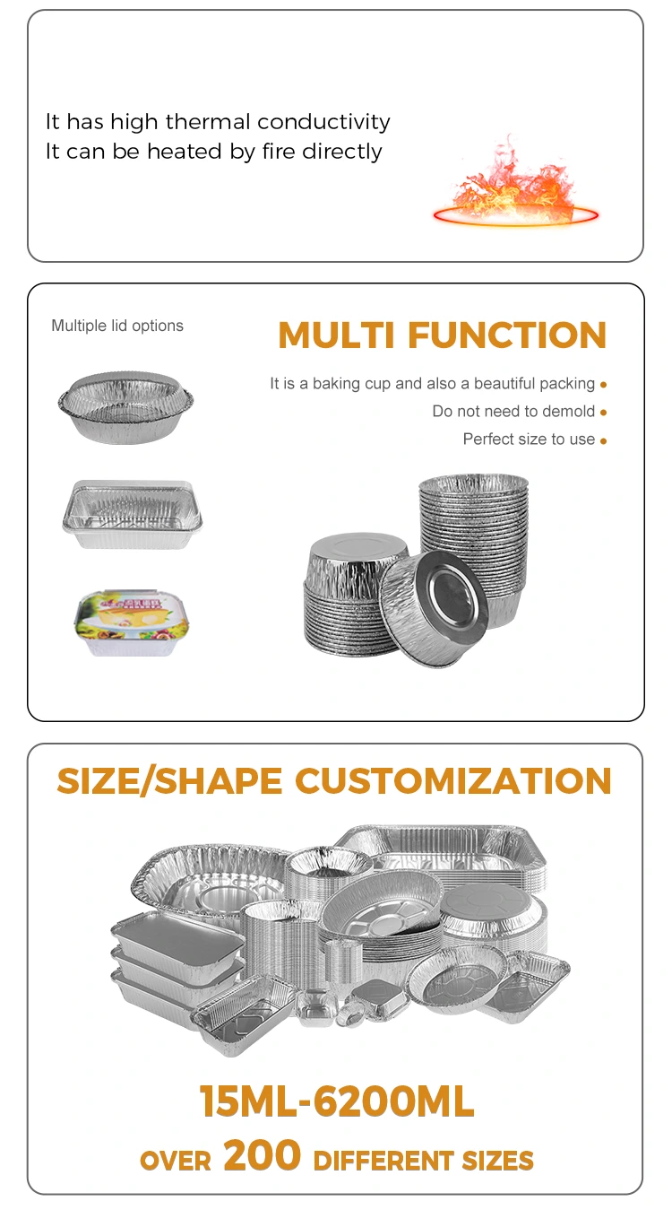 Furnizor de folie de aluminiu Yunchu Cupa de copt Cupa de copt din aluminiu din aluminiu Foil Foil Foil Foil Coacere și conturarea recipientului cu folie de aluminiu cu mai multe utilizări, coacerea, o gamă largă de grătar de utilizare, poate fi încălzit peste flacără deschisă și rezistent la coacere, în loc de ghivece, magazinele de coacere, locuințele, fabricile de alimente pot fi aplicate, moling, pentru a se bucura de oală, poate fi folosită, casele de mâncare Trebuie să fie pliați și formați, utilizarea fantezistă, o singură mucegai, budincă, prăjitură, torturi de ou, ouă cu aburi, grătar etc.