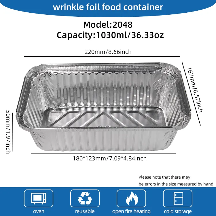 Cutia de prânz pentru grătar de unică folosință de la Yunchu Aluminium Foil Factory, recipientul din folie de aluminiu argintie este fabricat din folie de aluminiu alimentară de înaltă puritate. Este non-toxic și fără gust, rezistent la temperaturi ridicate și la temperaturi scăzute. Punctul de topire este de până la 250°C. Poate fi în contact direct cu alimentele. Nu eliberează substanțe nocive atunci când este încălzit la temperaturi ridicate. De asemenea, poate menține o formă stabilă atunci când este refrigerată și congelată. Este un design unic și poate fi aruncat după utilizare. Nu este nevoie să petreceți timp curățând farfuriile și tigăile de copt, complet detoxifiant. Rezolvă problema obositoare a curățării după mese și este potrivită în special pentru scene precum întâlniri cu mulți oameni și călătorii în aer liber. Materialul de folie de aluminiu îngroșat îmbunătățit are o textură solidă și o capacitate puternică de susținere. Nu este ușor să se scurgă sau să se deformeze atunci când țineți mâncăruri cu supe sau ingrediente grele pentru grătar. Marginile sunt netede și fără bavuri, ceea ce îl face mai sigur de utilizat. De asemenea, este potrivit pentru cuptoare, friteuze cu aer, aburi și alte ustensile de bucătărie, iar gătitul și servirea se pot face într-un singur pas.