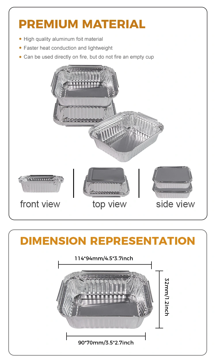 În plus, acest recipient de folie de aluminiu din aluminiu de la unitatea de prânz de un unică folosință este de asemenea extrem de sigur, deoarece poate fi utilizat în mod normal sub o flacără deschisă, fără să vă faceți griji pentru pericolele de incendiu. În același timp, rezistența sa excelentă a temperaturii și sigilarea oferă, de asemenea, o garanție pentru transportul în siguranță al alimentelor, permițând consumatorilor și clienților să o folosească cu mai multă încredere.