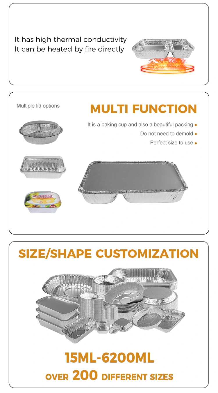 Containerele de folie de aluminiu de argint de aluminiu cu mai multe compartimente de unică folosință cu capace de hârtie funcționează bine toamna și iarna, datorită proprietăților lor bune de retenție de căldură. Indiferent dacă este vorba despre o tocană fierbinte proaspăt făcută sau alte alimente calde, poate menține o temperatură adecvată pentru o lungă perioadă de timp, permițând consumatorilor să se bucure de mâncare caldă.