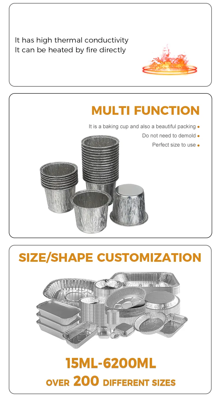 Pahar rotund de unica folosinta pentru prajitura Recipiente pentru alimente din folie de aluminiu argintie