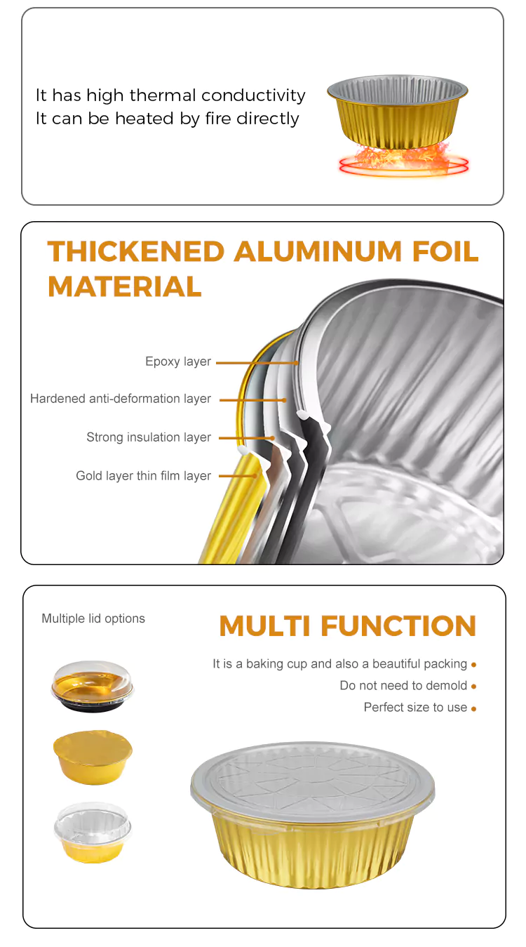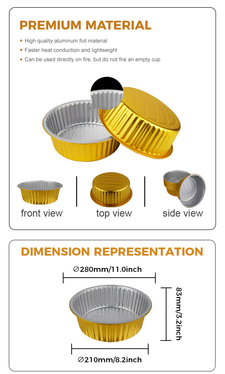 Hot Tags: Recipiente rotunde de unică folosință din folie de aluminiu aurie de mare capacitate