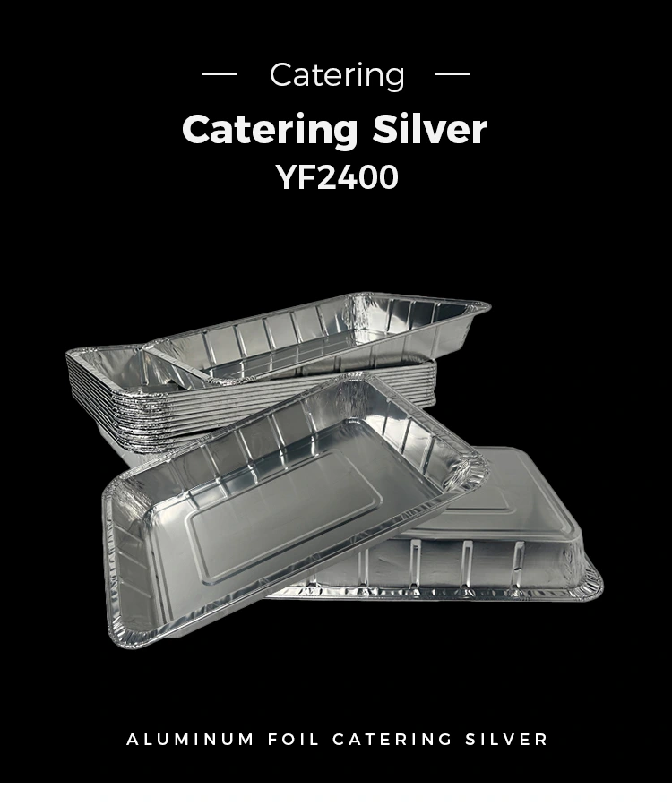 ​Yunchu Aluminum Foil Wholesale Model YF2400 Large grilled fish takeaway Silver Aluminum Foil Containers is suitable for all kinds of large baking equipment, such as baking ovens, retort boxes and barbecue grills, etc. This product is designed for disposable barbecue takeaway, can withstand high temperatures and make large cakes, suitable for placing food directly on the baking sheet for steaming, not only does not stick to the placă și nu este ușor de ars, dar poate contacta direct flacăra deschisă. Produsul a trecut certificările naționale relevante pentru a asigura utilizarea în siguranță. În plus, are o rezistență excelentă la căldură și poate rămâne stabilă la temperaturi ridicate, nu ușor de deformat sau de fisură. Suferiți testări interne riguroase pentru a asigura siguranța și fiabilitatea produsului.