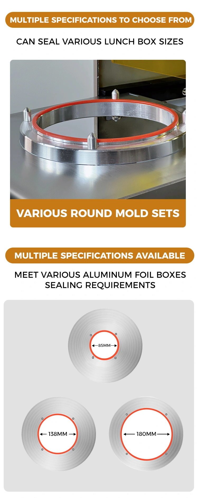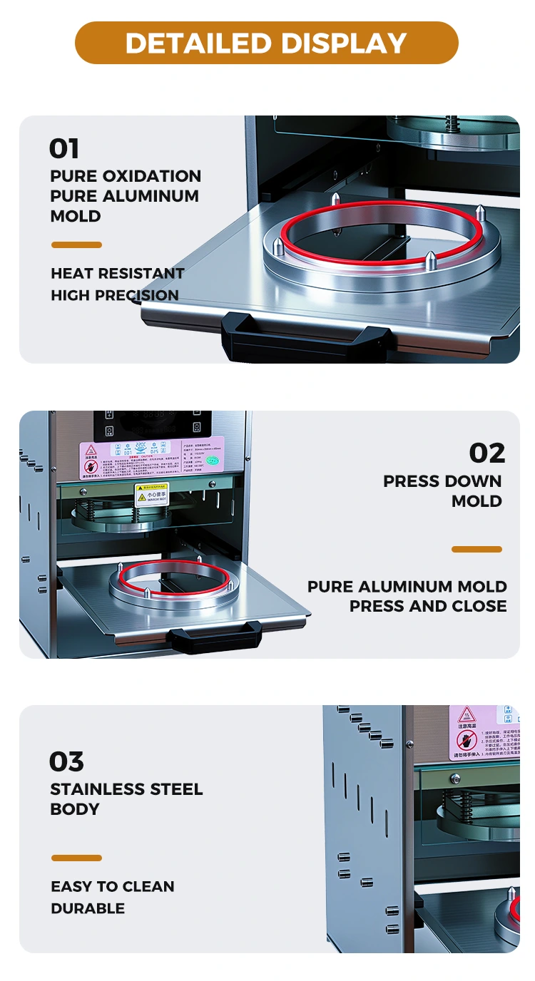 Adaptabilitate puternică și funcționare simplă: Perfect compatibil cu această cutie de prânz aurie și, de asemenea, compatibil cu diverse ambalaje din folie compozită PP/PE. Nu este necesară pregătirea profesională și puteți începe în doar 10 secunde. Doar închideți și aliniați cutia de prânz și apăsați ușor termosigilantul timp de 3 până la 5 secunde pentru a finaliza sigilarea, îmbunătățind semnificativ eficiența ambalajului.