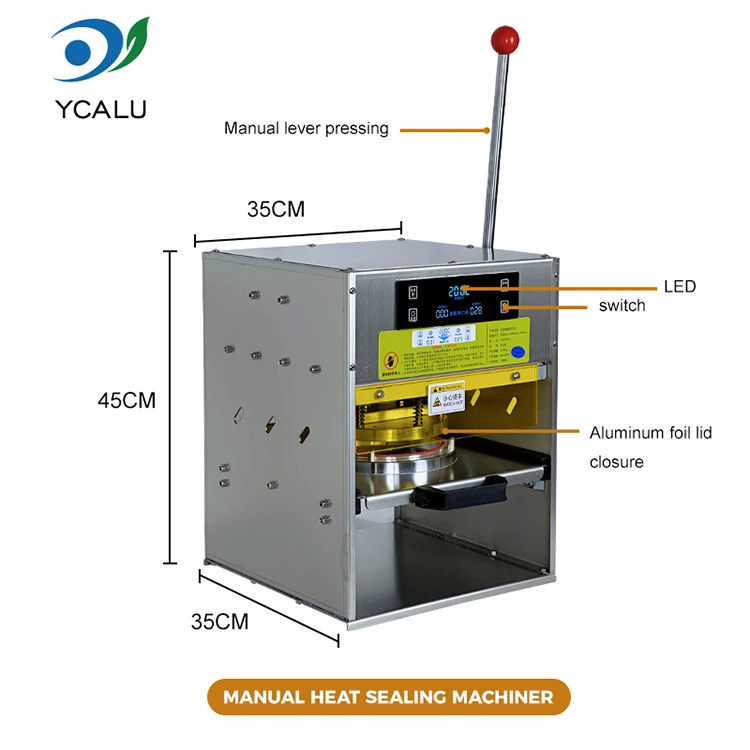 Mașină manuală de etanșare termică cu recipiente din folie de aluminiu aurie