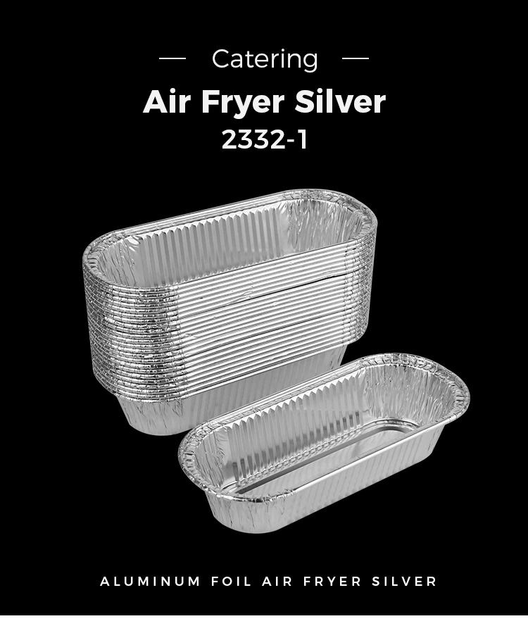 • Friteuza cu aer oval care coace recipiente din folie de aluminiu de argintFriteuza cu aer oval care coace recipiente din folie de aluminiu de argint