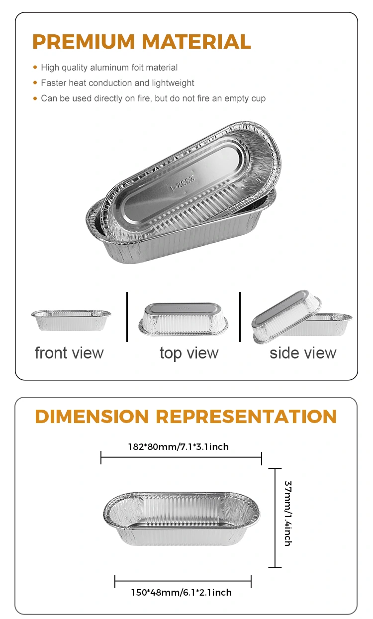 Furnizor de folie de aluminiu Yunchu Ovală Friteuza de argint din argint din folie de aluminiu este un tip de recipient care poate fi utilizat pentru abur, fierbere, coacere, coacere și alte scopuri și poate fi utilizat pentru sosuri, sosuri de scufundare, condimente mici și probe de eșantion de coacere. Materialul de folie de aluminiu de tip 8011-0, rezistența la tracțiune și rezistența la coroziune au o bună alungație, material folie de aluminiu îngroșat, durabil și nu este ușor de rupt în voie, designul semicercului din față și din spate nu afectează mâinile, modelarea integrată, suprafața de perete este la fel de netedă ca o oglindă, cu dimensiuni bogate, adecvate pentru utilizarea într-o varietate de scenarii.
