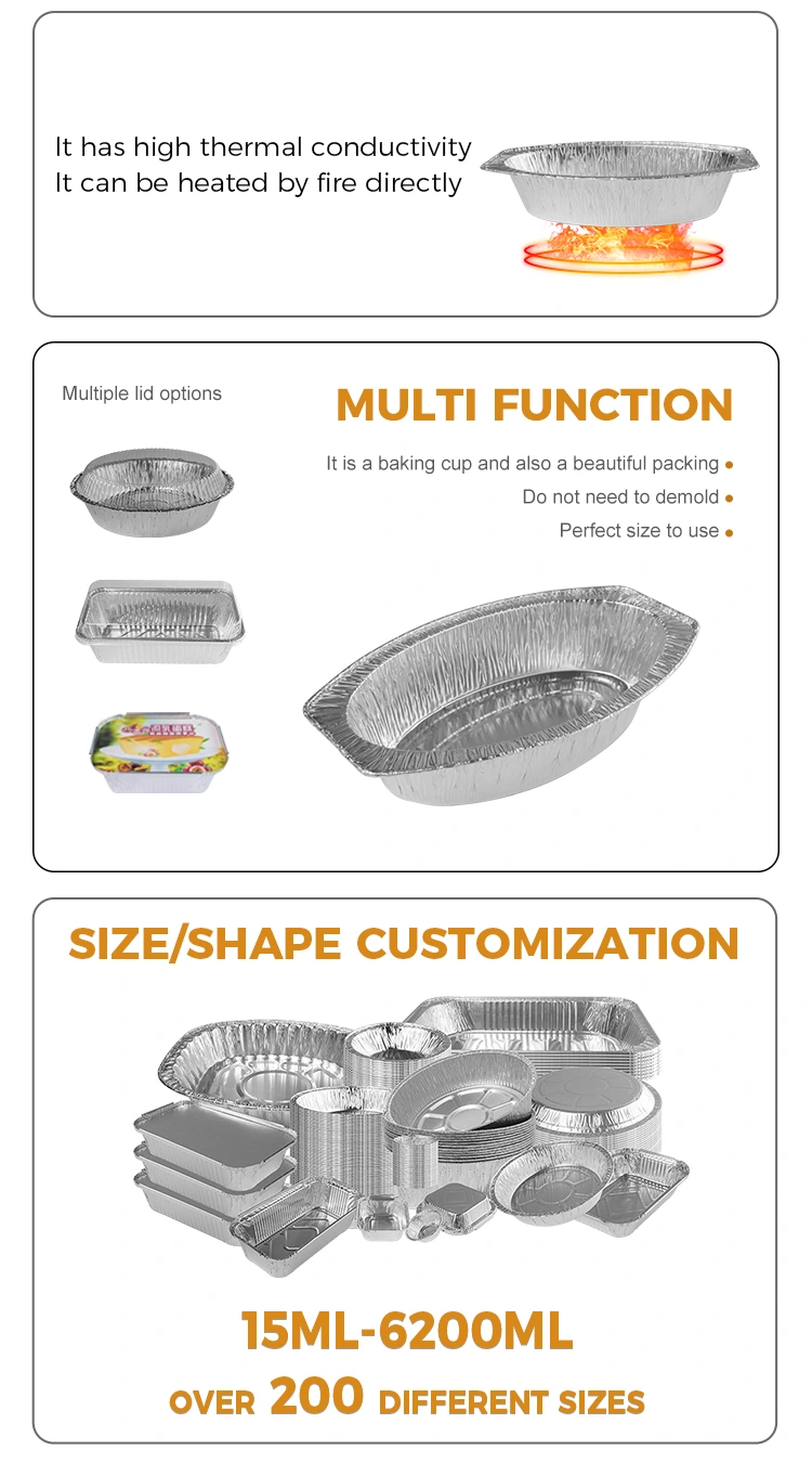 Furnizorul de folie de aluminiu Yunchu oferă recipiente cu folie de aluminiu de argint copt ovală pentru gătit la domiciliu, brutării, magazine de lanț și livrare de alimente frigorifice. Confecționată din material folie de aluminiu de calitate alimentară, acest recipient prezintă o formă ovală unică, care îl face să iasă în evidență printre numeroasele cutii de copt de argint. Acest recipient este potrivit în special pentru a ține batiste calde, fructe, pâine și tot felul de alimente cu replică și poate răspunde nevoilor unei game largi de tacâmuri. Datorită conductivității sale termice bune, poate disipa uniform temperaturi ridicate, asigurându -se că alimentele sunt încălzite uniform. În plus, are o anumită capacitate de încărcare și rezistență la presiune, menținând stabilitatea chiar și în cazul mai multor stive, prevenind deformarea și este ideal pentru utilizare în timpul transportului. Pentru a se adapta mai bine la diferite scenarii și nevoi, acest container poate fi, de asemenea, personalizat în funcție de cerințele clienților și poate oferi capacelor potrivite pentru un plus de practic.