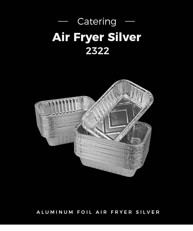 Acest recipient cu folie de aluminiu de argint de copt pătrat este confecționat din material folie de aluminiu de calitate alimentară, asigurându-se că produsul este fără miros și complet conform standardelor de siguranță alimentară.