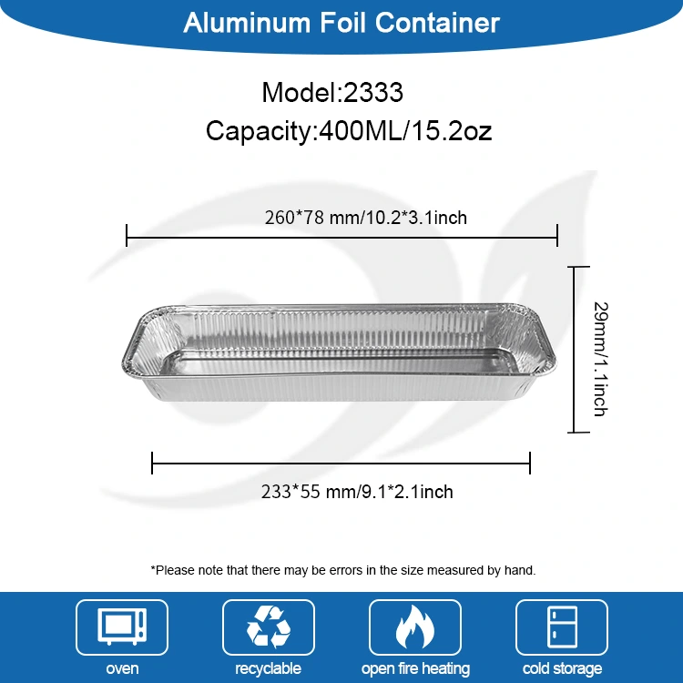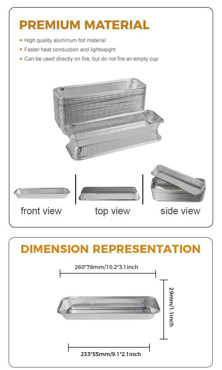 Recipientul dreptunghiular al furnizorului de folie de aluminiu Yunchu Recipient de pâine de aer friteuză din folie de aluminiu de argint, special utilizate pentru coacerea pâinii, pot fi, de asemenea, utilizate ca un bol cu ​​folie de staniu, potrivit pentru pâine, coacere, pâine prăjită, orez copt și alte alimente. Acest recipient are o gamă largă de utilizări, material de folie de aluminiu îngroșat de calitate alimentară, durabil și nu ușor de rupt, materialul de contact alimentar, poate fi utilizat în cuptoare, grătare la grătar, prăjitoare de aer și alte echipamente. Materialele de calitate alimentară sunt ușor de curățat, pot fi utilizate direct în contact cu alimentele, pot fi aruncate după o singură utilizare, nu este ușor de scos în jos, demodarea simplă, ingredientele de înaltă calitate sunt încălzite uniform, pot fi demodate direct, nu ușor de scos în jos. Suportați comandarea cu ridicata a foliei de folie de aluminiu și poate oferi servicii de personalizare a imprimării modelului, cu un singur MOQ de 1000 de piese. Acest container dreptunghiular de folie de aluminiu de argint de grătar oferă o varietate de specificații și modele pentru a alege, dacă este necesar, vă rugăm să contactați personalul de vânzări pentru consultare.