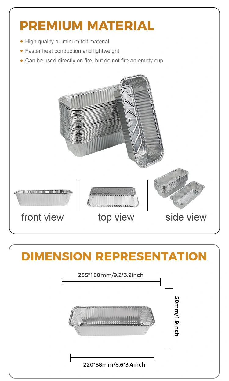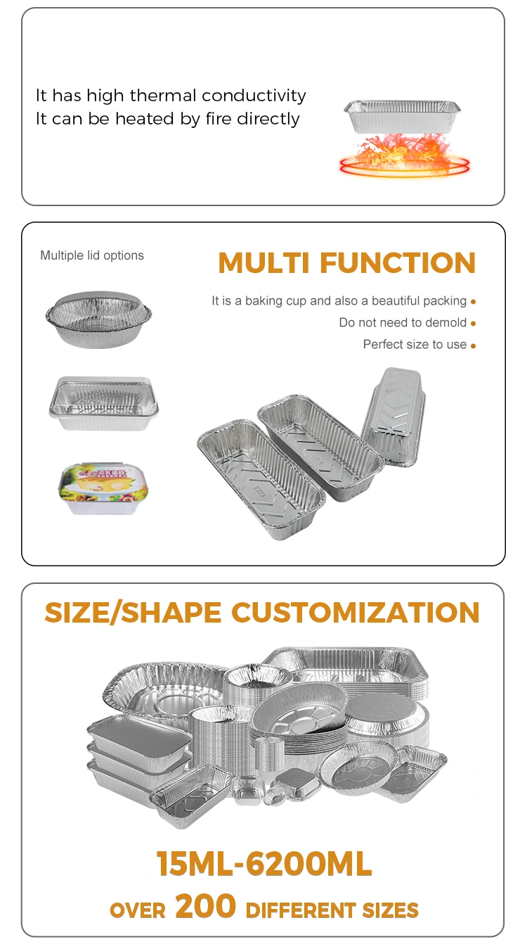 Foaia de copt dreptunghiulară de pâine de pâine Recipientele din folie de aluminiu de argint furnizate de furnizorul de folie de aluminiu Yunchu este disponibil într -o varietate de dimensiuni și specificații, potrivite pentru tot felul de echipamente pentru ghivece. Indiferent dacă este un grătar mare sau un mic cuptor pentru casă, îl poate gestiona cu ușurință. Acesta vine într -o varietate de dimensiuni și poate satisface nevoile diferitelor grătar cu flacără deschisă, indiferent dacă este vorba de un grătar în aer liber sau de o utilizare temporară ca farfurie, nu va fi nicio problemă.