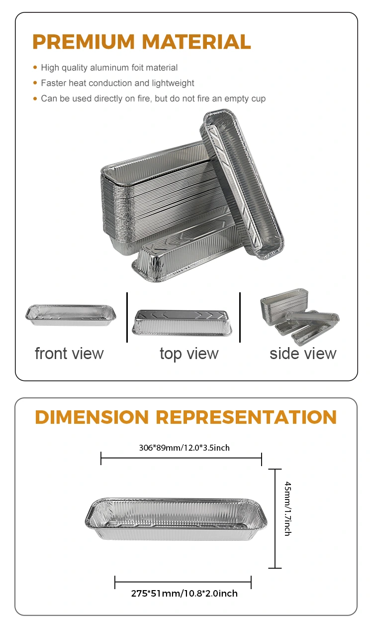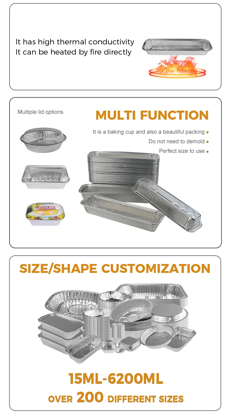 Furnizor de folie de aluminiu Yunchu Trava de pâine dreptunghiulară care coace recipiente din folie de aluminiu din aluminiu, o varietate de metode de încălzire, vă puteți bucura de bucuria de coacere în orice moment, izolare și prospețime mai eficientă, design modernizat și îngroșat, materiale selectate de înaltă calitate pentru protecție de mediu și de a fi mai de încredere, cu o notă, cu o cozi Ușor de zguduit de jos, mâncarea este mai bine demonstrată, produsul este utilizat pe scară largă în domeniul grătarului și coacerii, mai ales potrivit pentru camping, brutărie, tarabe de grătar, livrare de preparare și restaurante de sushi și alte ocazii. Este conceput pentru a răspunde nevoilor practice ale majorității gospodăriilor și magazinelor.