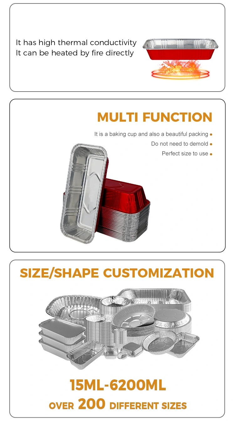 La coacerea acasă, utilizați Recipiente de foițe de aluminiu argintiu pentru a face fâșii lungi de pâine, fără să vă faceți griji că aluatul se lipește de farfurie sau să se ardă și obțineți cu ușurință un produs atât de frumos, cât și de gustos; La pregătirea micului dejun, pâinea care a fost porționată în noaptea precedentă poate fi încălzită direct în cuptorul cu microunde dimineața și asociată cu lapte pentru o masă rapidă și hrănitoare. Când faceți un picnic sau campați, purtați pâine sau sandvișuri cu dvs. Cutia din folie de aluminiu poate ține afară praful din exterior. Când vrei să mănânci, deschide-l și bucură-te. Nu este nevoie să transportați veselă suplimentară. Cand ai o gustare la birou, cutia de paine refrigerata in frigider poate fi incalzita cateva minute in pauza de pranz, si te poti bucura de paine calda si moale. Nu este deranjant să reînnoiești energia.