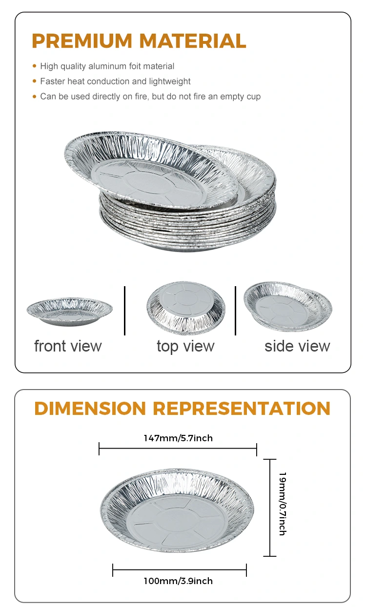 Caracteristici: Recipient alimentar cu folie de aluminiu din argint rotund copt din aluminiu de argint