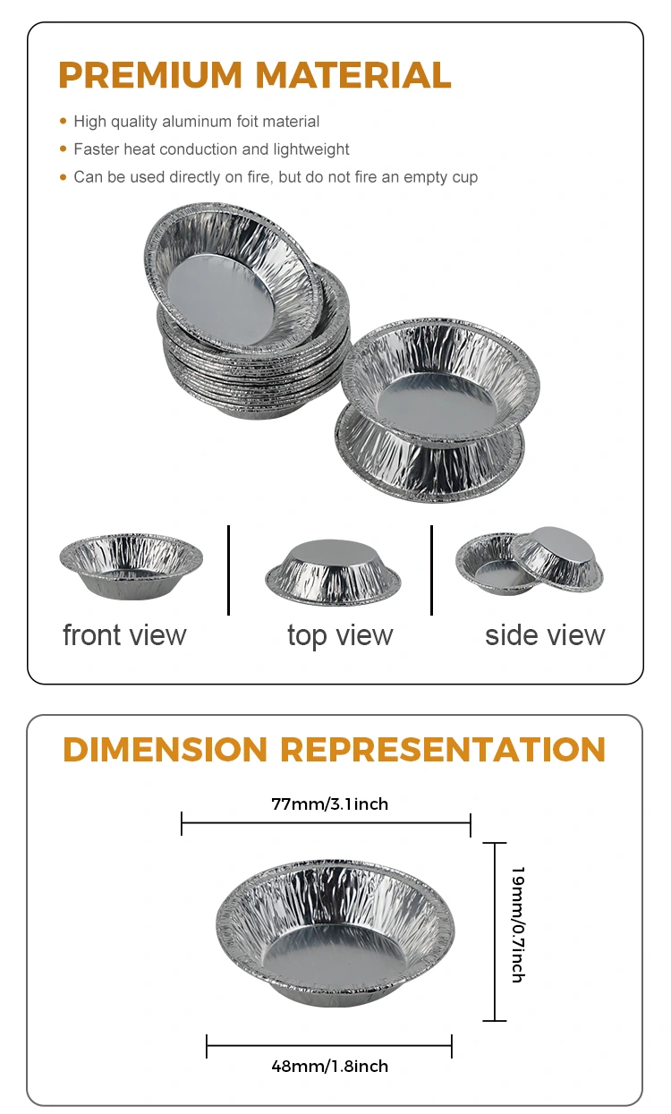 • Tartă rotundă pentru ouă pentru gustări recipient cu folie de aluminiu din aluminiu argintiuTartă rotundă pentru ouă pentru gustări recipient cu folie de aluminiu din aluminiu argintiu
