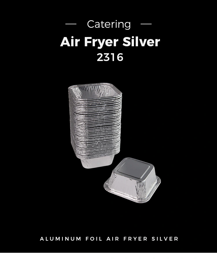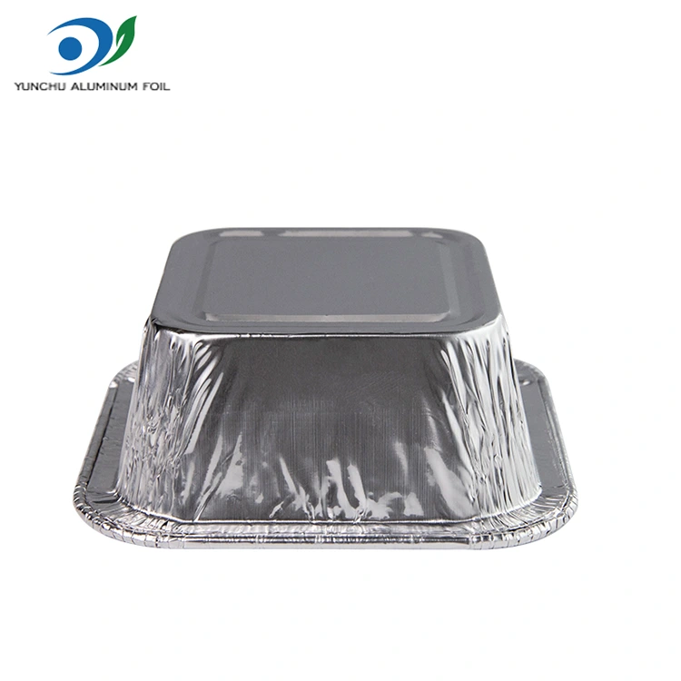 Yunchu aluminum foil supplier Square air fryer Silver Aluminum Foil Containers in catering, home air fryer production, with takeaway delivery, buffet sauces, banquets and other places, but also suitable for steamed eggs, chocolate, biscuits, small cakes, sauces and other ranges, whether it is with food or sauces, can be applied to every catering industry places, can also be used with baked goods, small Căni de folie de aluminiu pot fi eliminate în timp ce adăugând puncte la vase, dar pot fi spălate și utilizate fără povară.